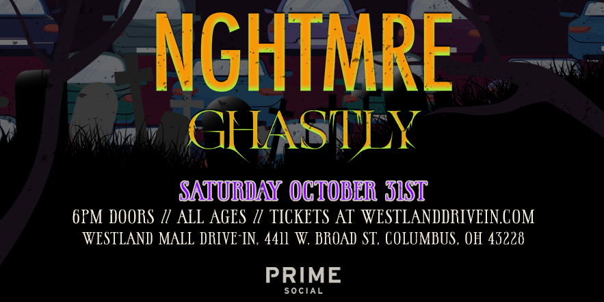 COLUMBUS, OH–September 24, 2020–On Saturday, October 31, Prime Social Group welcomes two of EDM’s most popular DJs/musicians NGHTMRE (a.k.a. Tyler Marenyi) and Ghastly (a.k.a. David Lee Crow) to Haunted Fest at their recently opened drive-in concert venue on Columbus’ westside.